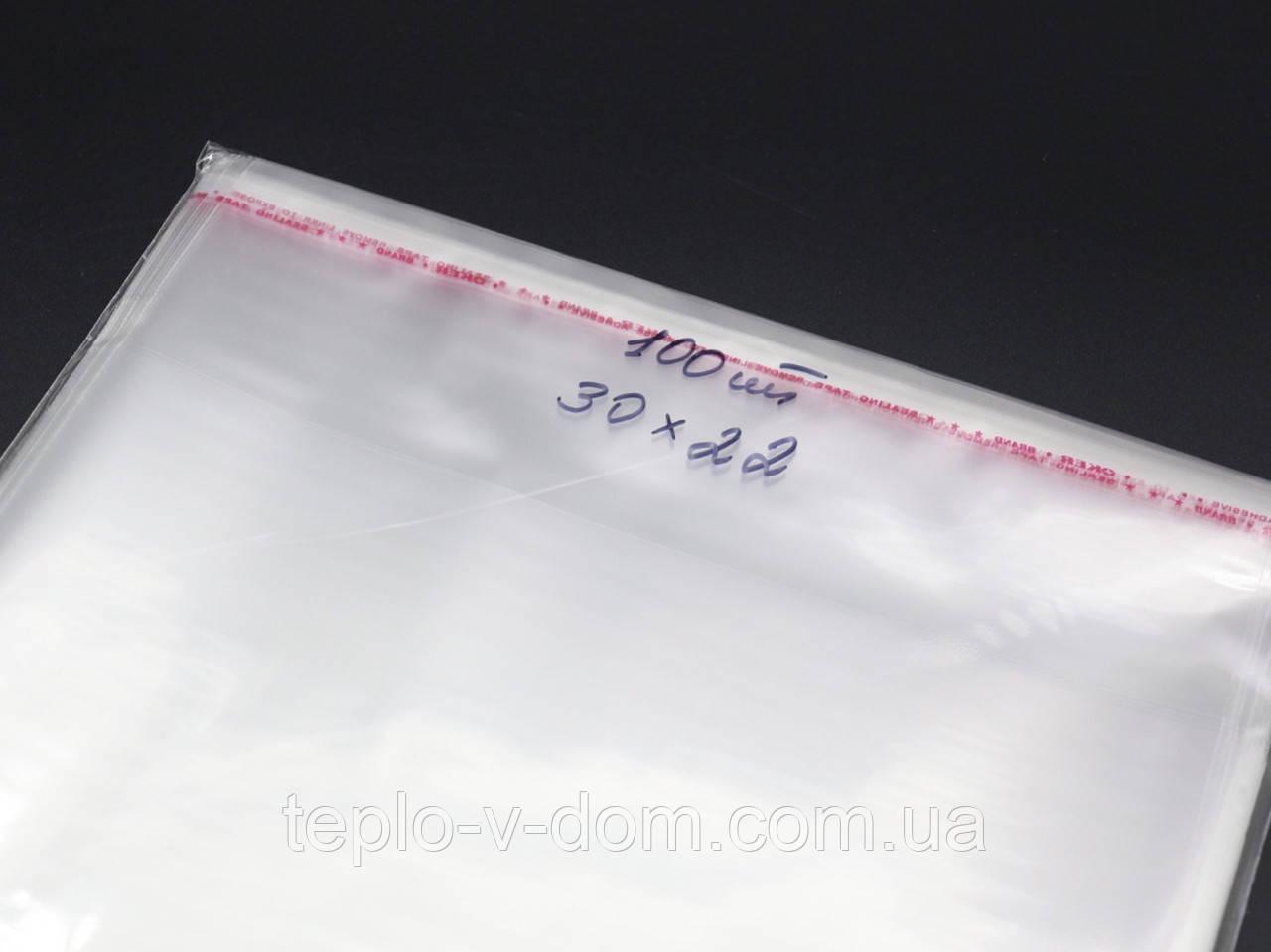 Пакети з клейкою смугою з поліпропілену 30х22см 25мкм 100шт/уп у закритому вигляді - 25,5х22см прозорі