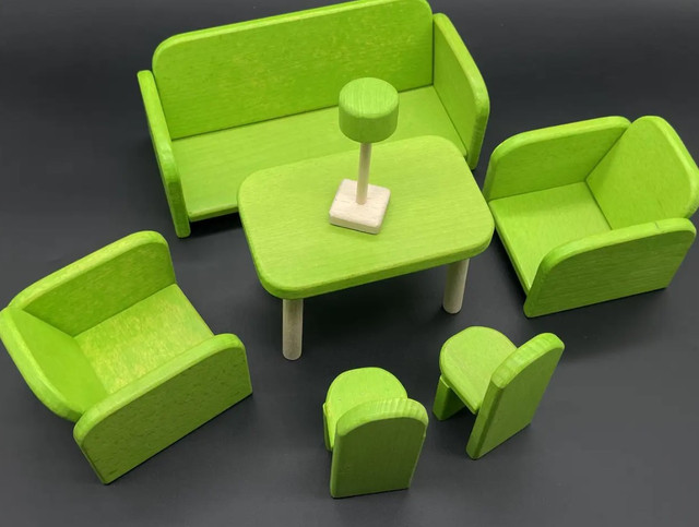 Комплект для лялькової вітальні з натурального дерева (набір ручної роботи) зелений колір